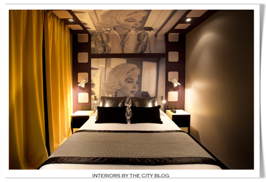 Marylin fait ses apparitions dans les 46 chambres de l'établissement à travers des clichés pris par André de Dienes et George Barris